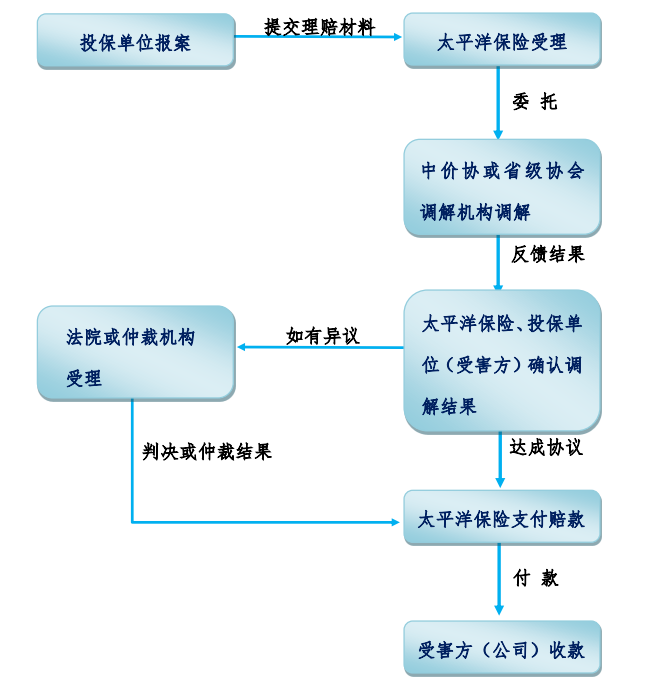 投保人及受害方通过调解、诉讼或仲裁确定赔偿责任及金额后,投保人与保险公司达成赔偿协议,保险人完成赔款给付。