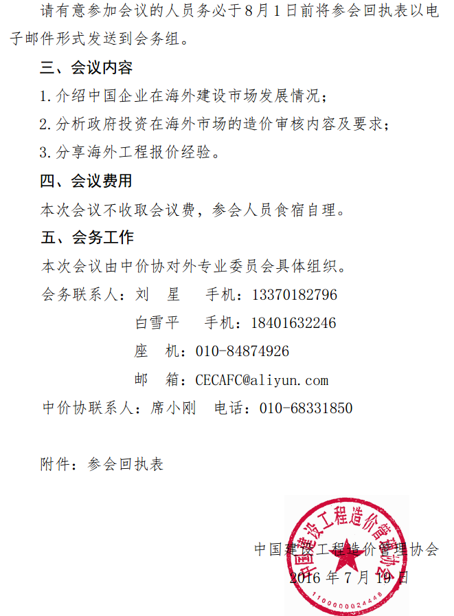 中价协关于召开推进海外工程造价咨询工作交流研讨会议的通知