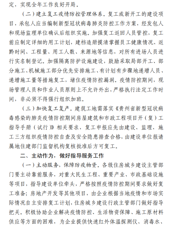 [贵州省]关于应对新冠肺炎疫情防控期间支持建筑企业复工复产若干措施的通知