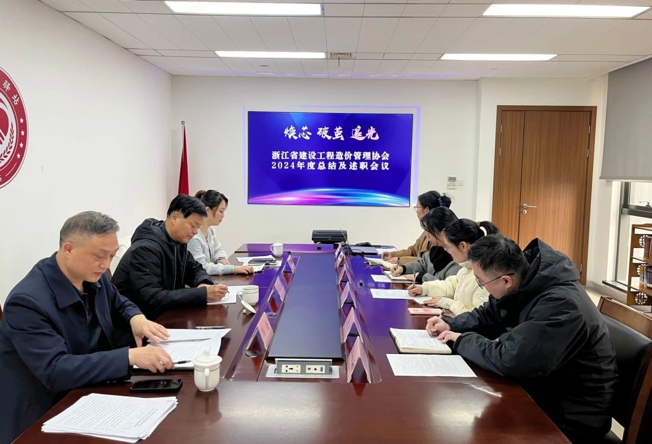 浙江省建设工程造价管理协会2024年度总结暨表彰会议在杭召开。会议以习近平新时代中国特色社会主义思想为指导,认真学习浙江省两会会议精神,传达了浙江省住房和城乡建设工作的会议精神,回顾总结2024年工作,全面部署2025年工作。协会领导及秘书处全体工作人员出席会议,会议由副会长兼秘书长陈奎主持。